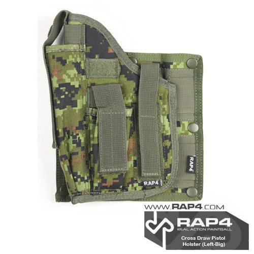 Fits all .68cal Pistol including Arikon, T68, Combat Pistol, PT Extreme, Tippmann PTX and all big arms etc. Uses hook and loop (velcro) system. Backing hook size is 8" x 8.3" (203.2 x 210.8 mm)