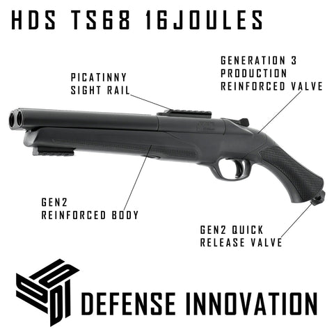 1 x 16j HDS https://defenseinnovation.com/products/hds-16-joules-home-defense-shotgun-68-cal