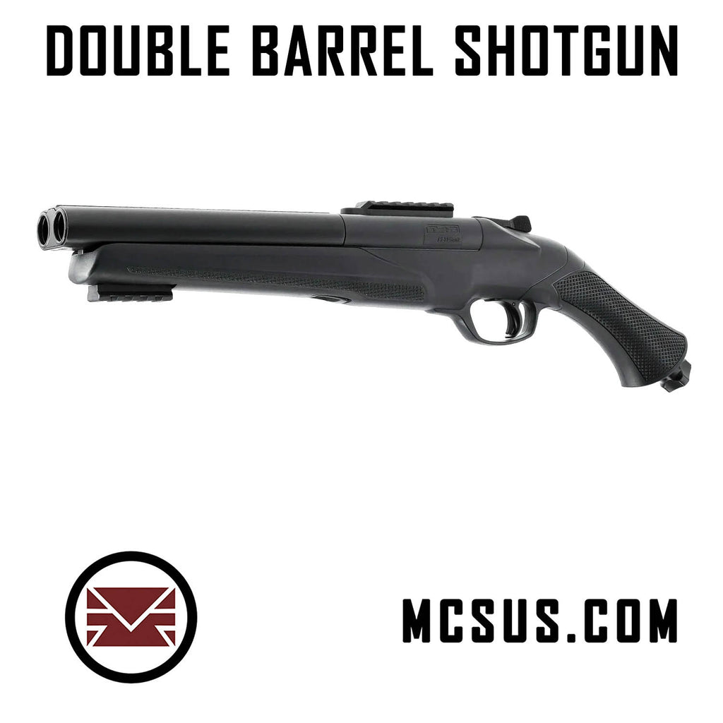 Double Barrel Paintball Shotgun is powered by 12g CO2 located in the pistol grip. Lightweight polymer frame with internal metal parts including the trigger and hammer.
