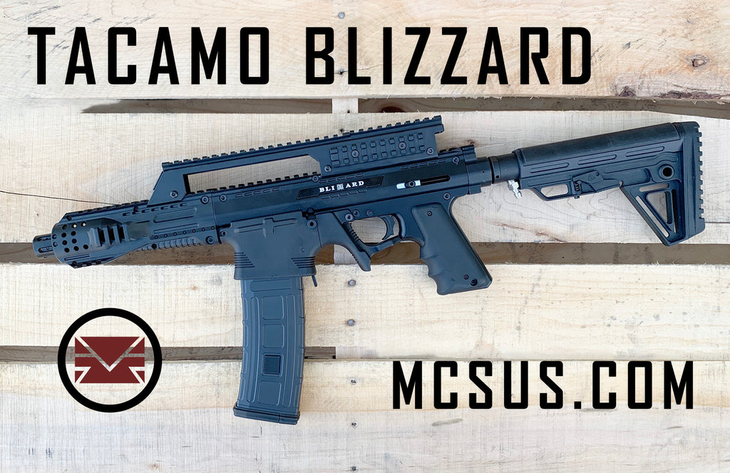 The Tacamo Blizzard G36 Paintball Gun - is built to look like a Sub Machine Gun. The TACAMO Blizzard is built Shaped Projectile and First Strike Round ready with internal flexi-air installed. TACAMO Blizzard Marker is built with the tried-and-true inline blowback internals, like those in the Tippmann 98, Battle Tested BT-4 and the Valken SW-1/Blackhawk. The TACAMO Blizzard is an easily serviceable and modular marker that arrives ready for Modern Combat Sports!