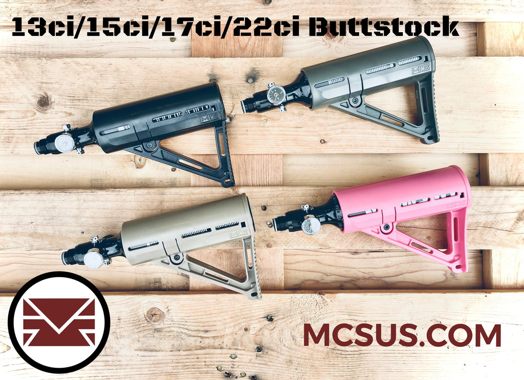 This is the latest air tank buttstock design to accommodate a wide variety of CO2 and air tanks. The new 13ci/15ci/17ci/22ci Universal TCA Air Buttstock attaches your air tank directly without any additional components, making it compact and helping you reduce your profile for easy maneuvering in tight spots. Simple and quick to install with 2 inches of adjustability.
